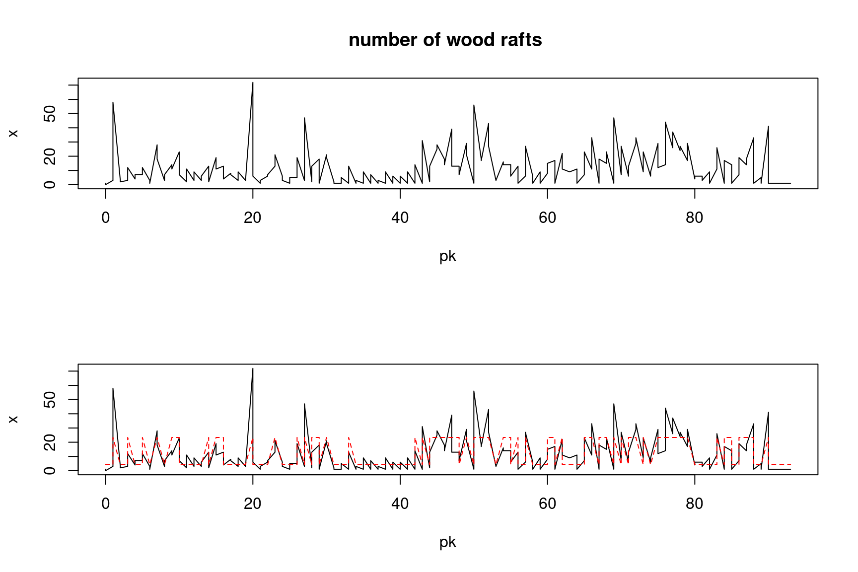 We will illustrate such a model in the case of a Poisson distribution. To do so we will consider an observed series consisting of the number of wood rafts observed along a river.